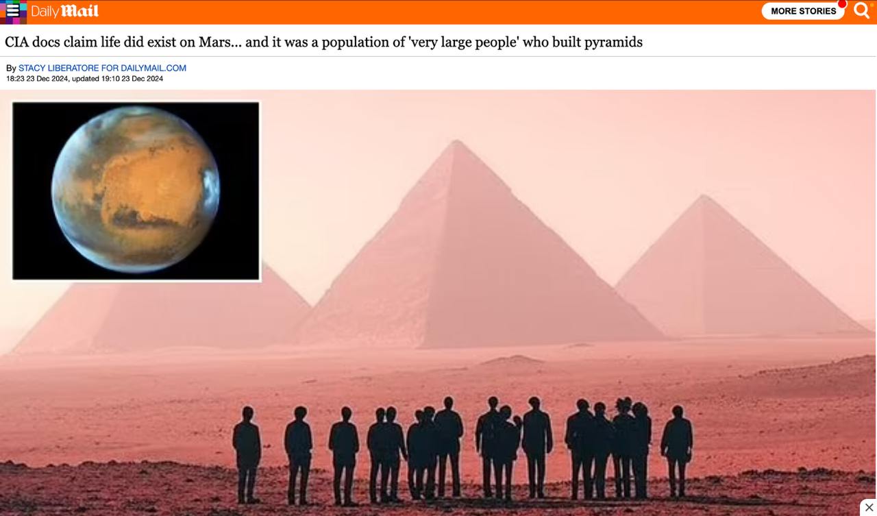 В отчете американского Центрального разведывательного управления говорится, что на Марсе существовала жизнь, а пирамиды на красной планете строили великаны.