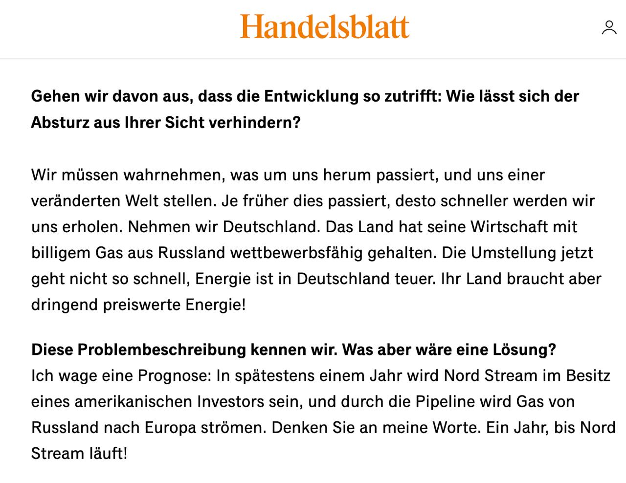 Об этом он сказал в интервью немецкой газете Handelsblatt.