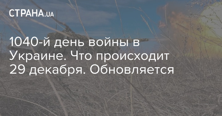 В воскресенье, 29 декабря, в Украине идет 1040-й день войны с Россией.