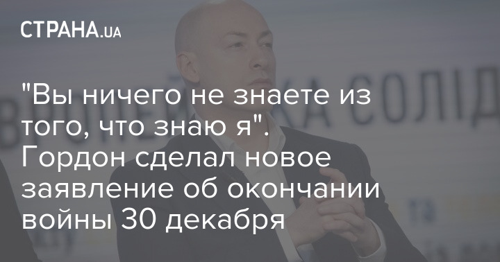 "Вы ничего не знаете из того, что знаю я". Гордон сделал новое заявление об окончании войны 30 декабря