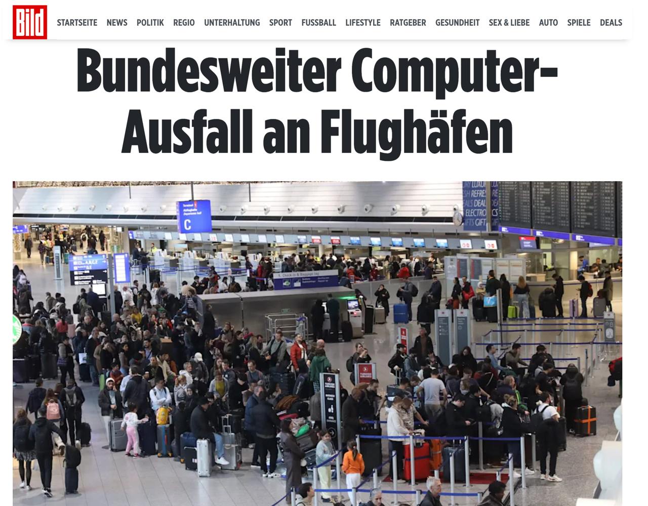 Проблемы с системами затронули аэропорты по всей Германии, включая Дюссельдорф, где скопились особенно большие очереди. По данным телерадиокомпании WDR, пассажиры в секторе безопасности вынуждены ждать около двух часов.