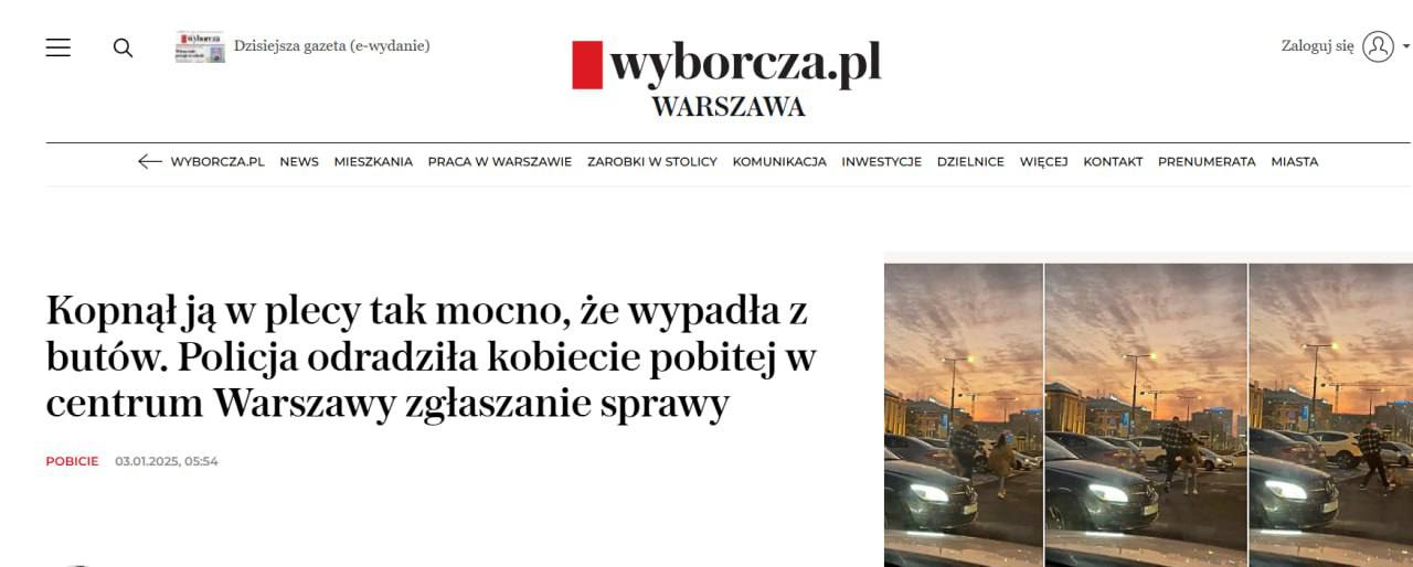 Также в издании добавили, что полиция посоветовала избитой в Варшаве женщине не сообщать об этом случае и не писать заявление.