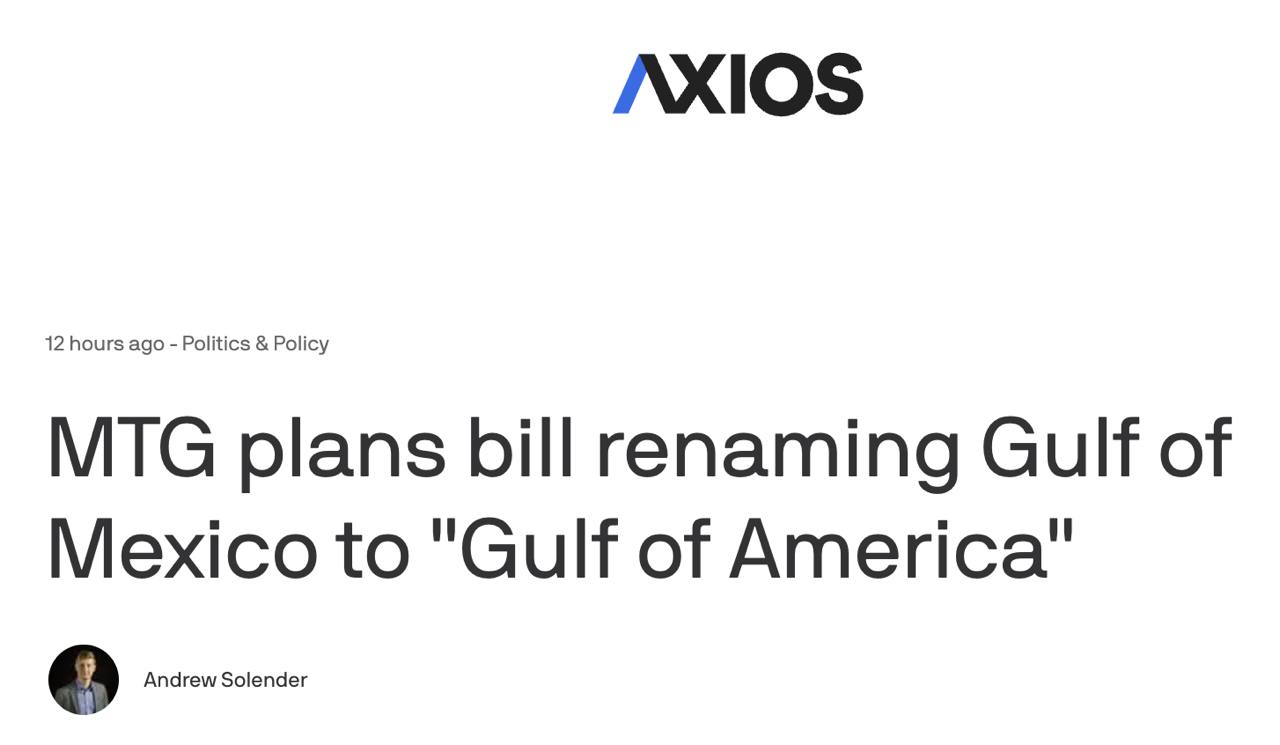 В одном из подкастов Тейлор Грин заявила, что "так воодушевилась, наблюдая за пресс-конференцией", что дала указание своим сотрудникам немедленно подготовить законопроект. В издании пока не понимают, как законопроект будет предусматривать изменение названия, однако по словам республиканки, федеральным агентствам, включая армию США, потребуется сделать "Залив Америки" официальным названием, которое они используют для обозначения залива.