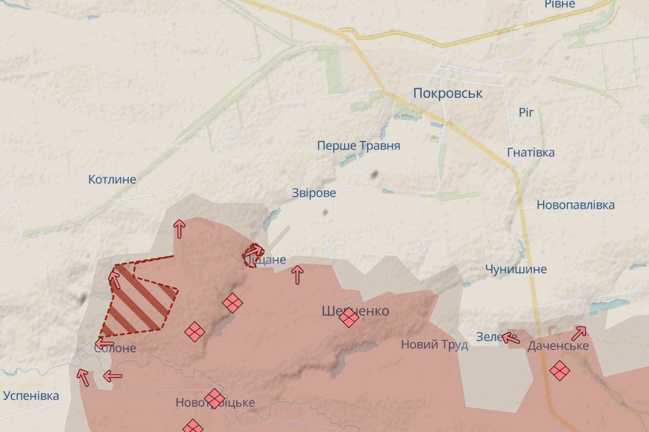 Под Покровском у РФ продвижение юго-западнее, в сторону Удачного, и восточнее, в сторону трассы на Константиновку.