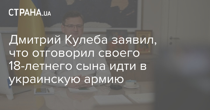 Дмитрий Кулеба заявил, что отговорил своего 18-летнего сына идти в украинскую армию