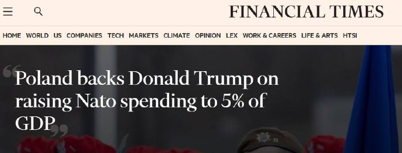 По данным Reuters, страны НАТО отрицательно отреагировали на предложения Дональда Трампа об увеличении военных расходов до 5% ВВП.