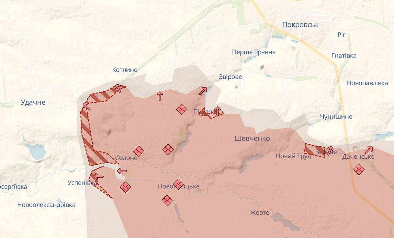 Под Покровском снова продвинулись на юге, на запад в направлении Удачного, севернее в направлении Котлиного (дорога между этими сёлами уже перерезана) и восточнее около Воздвиженки в направлении трассы на Константиновку.