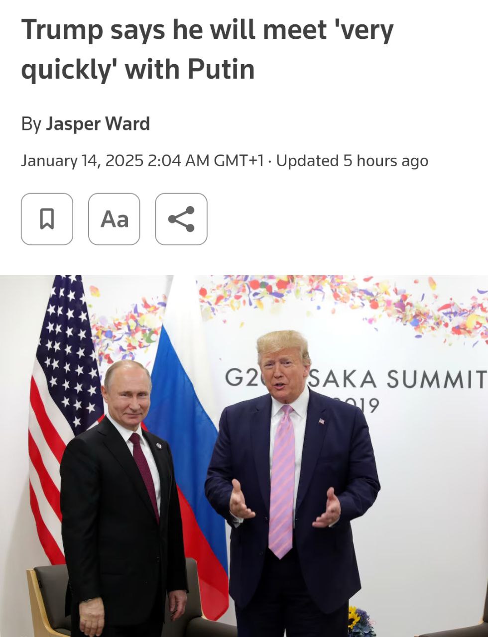 Ранее будущий советник Трампа по нацбезопасности Майк Уолтц заявил, что готовятся и встреча, и телефонный разговор американского президента с российским.