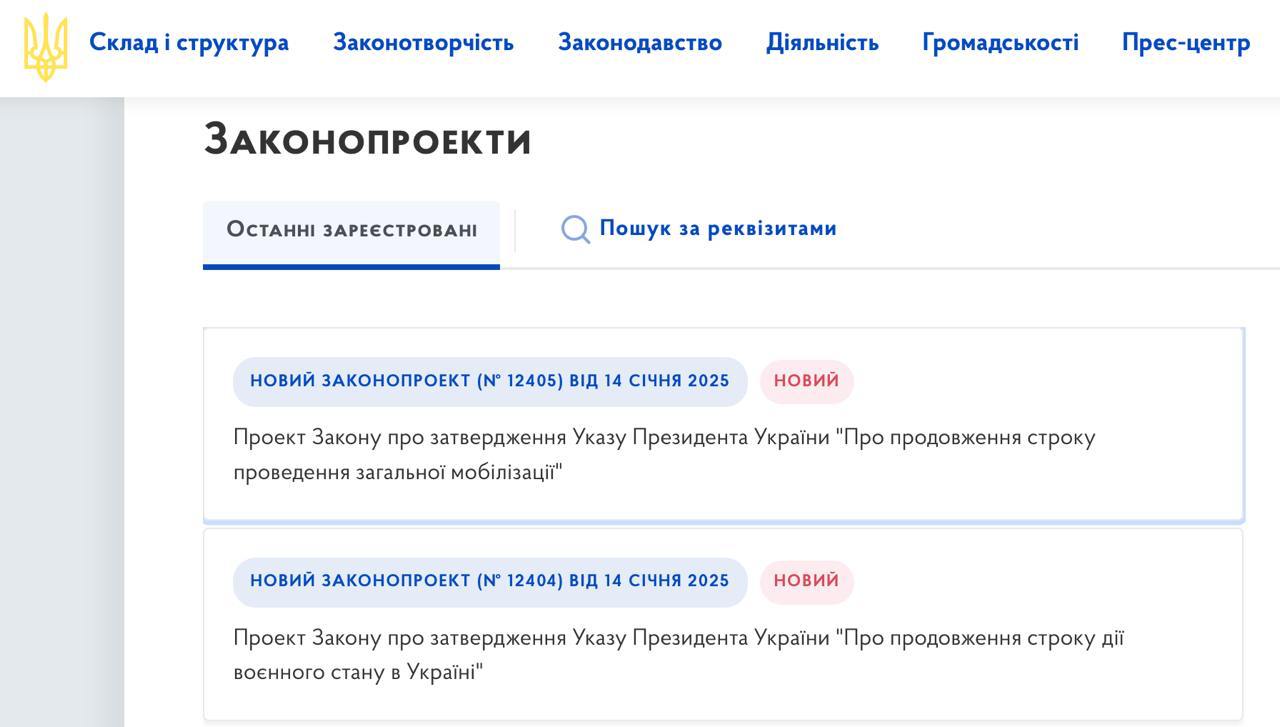 Владимир Зеленский внес в Верховную Раду законопроекты о продлении военного положения и мобилизации еще на 90 дней.