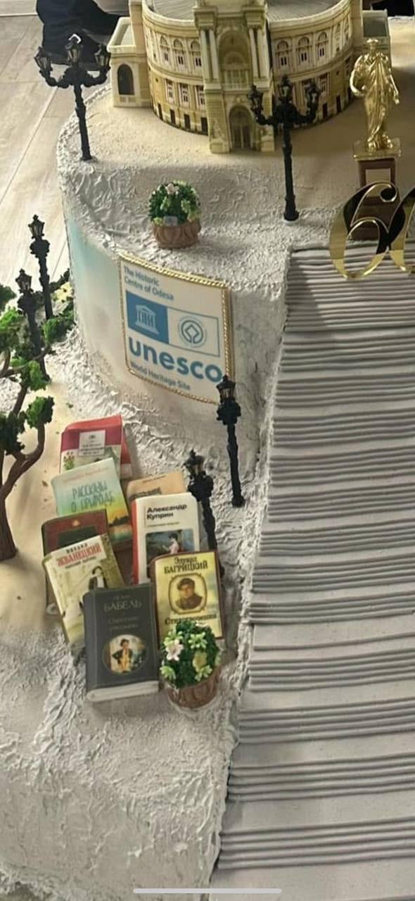 Также на торте виден логотип ЮНЕСКО. Центр Одессы находится под охраной этой организации, так как включен в список объектов всемирного наследия.