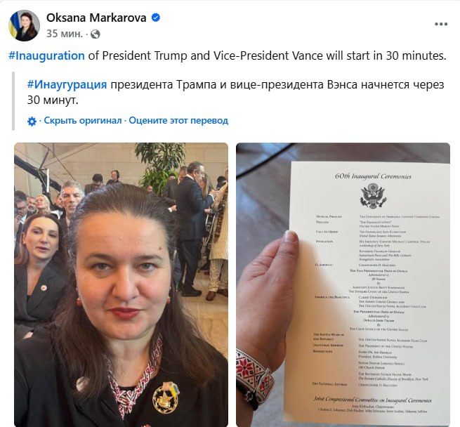 18:44 Украину на инаугурации Трампа представляет посол в США Оксана Маркарова.