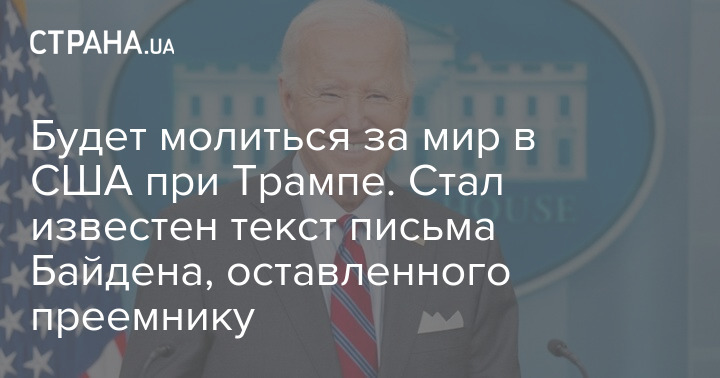 Стал известен текст письма, который экс-президент Джо Байден оставил своему преемнику Дональду Трампу в рабочем столе Овального кабинета. В нем он пишет, что будет молиться за мир для Америки в ближайшие годы.