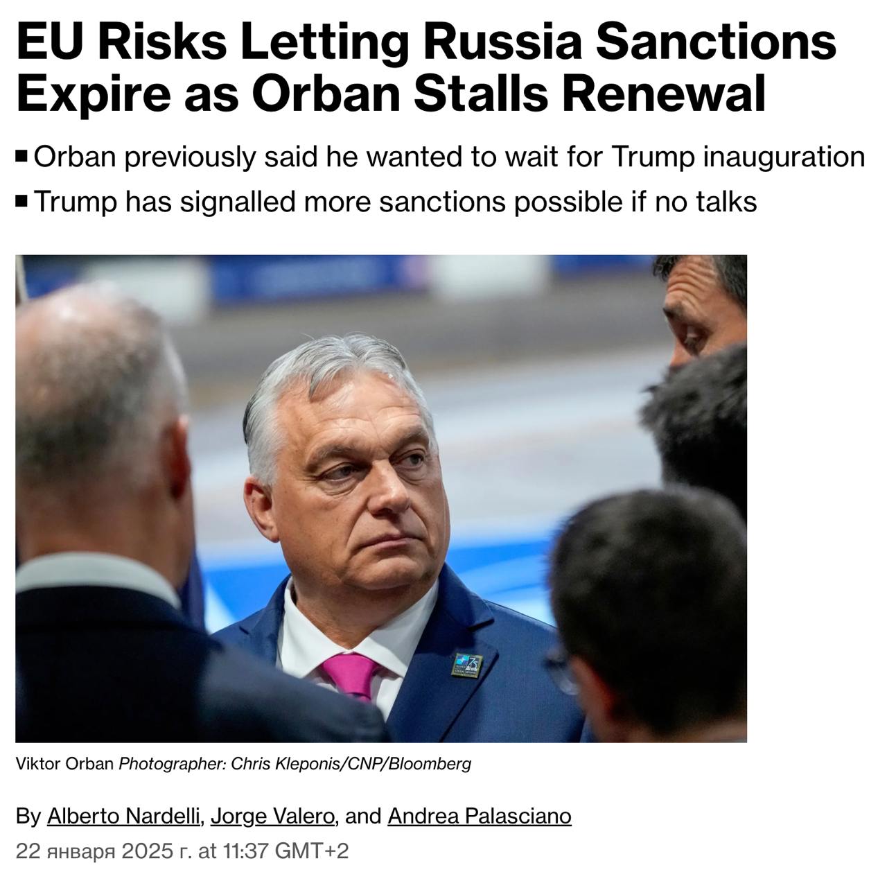 Срок действия санкций ЕС против РФ может истечь 31 января из-за премьер-министра Венгрии Виктора Орбана, который блокирует их продление.