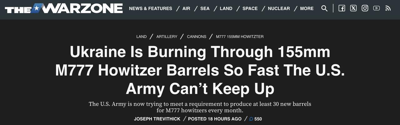 Украинские военные интенсивным огнем приводят в негодность стволы американских 155-мм гаубиц M777 быстрее, чем США их производят. Поэтому планируется запуск второго производства.