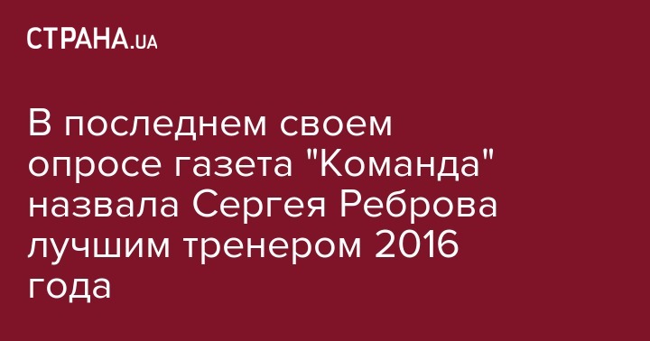 Газета "Команда" объявила наставника "Динамо" Сергея Реброва лучшим главным тренером Украины 2016 года. Об этом сообщает пресс-служба клуба.