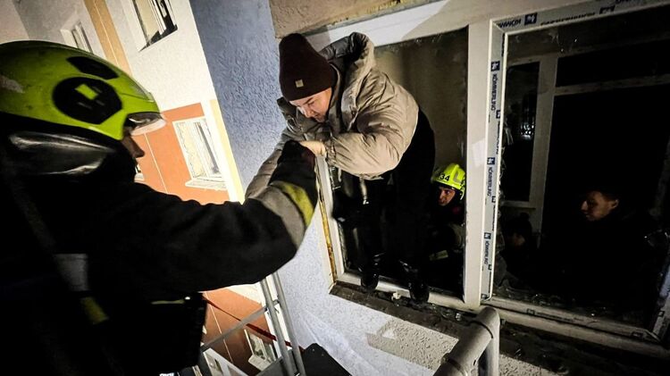 В Киевской области из-за российской атакой беспилотниками дрон попал по многоэтажке в Вишневом. В здании разрушены балконы с 5 по 9 этажи.