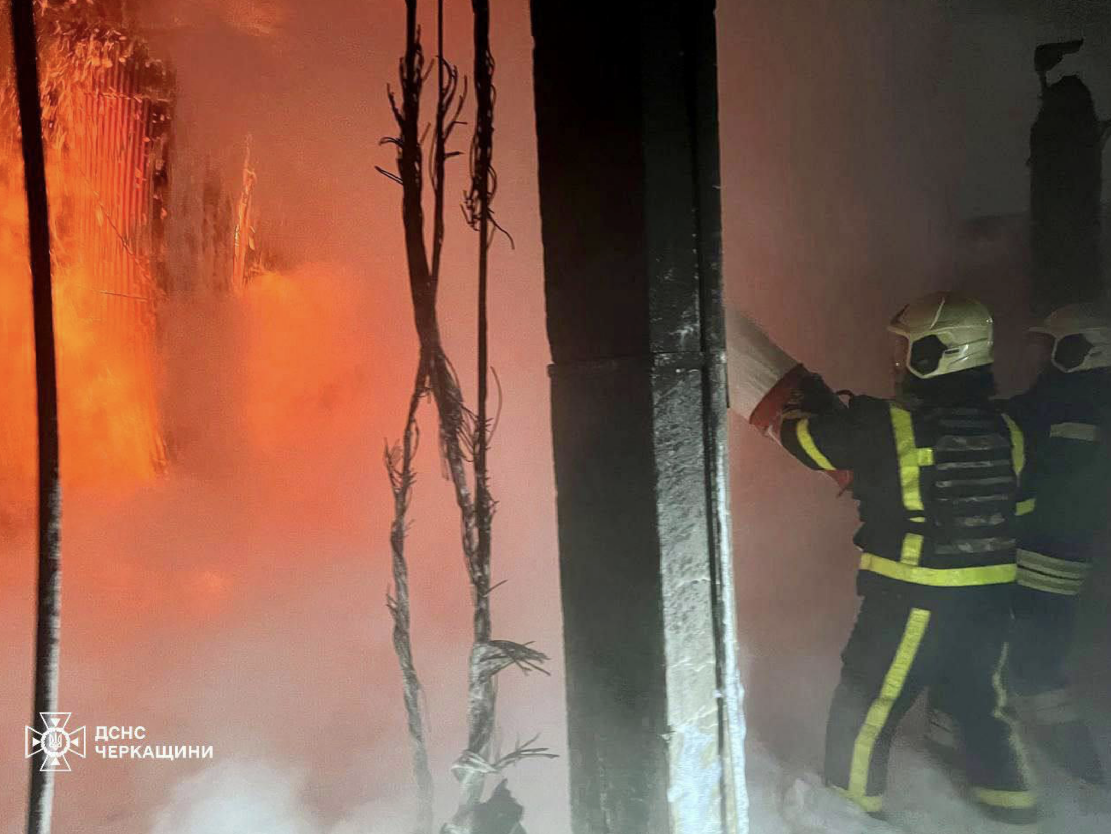 Власти подтверждали атаку "Шахедов" на объект инфраструктуры. На фото видно, как его тушат.