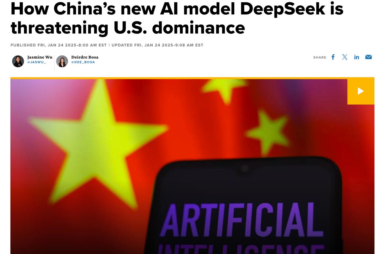 Китайская модель искусственного интеллекта DeepSeek превзошла всех конкурентов и вызвала панику в США - СNBC