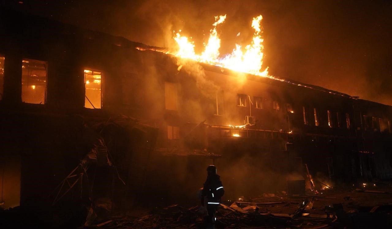 ГСЧС подтверждает, что "Шахед" поразил предприятие. Пожар уже потушили.