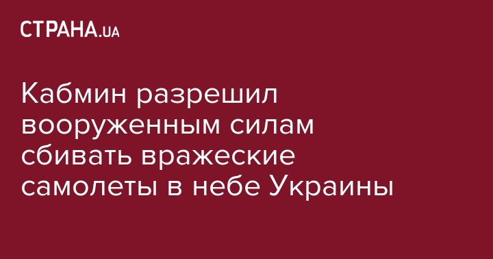 Кабинет министров принял постановление №1012, которым разрешил Вооруженным силам сбивать вражеские самолеты в украинском воздушном пространстве. Соответствующее распоряжение размещено на сайте Кабмина.