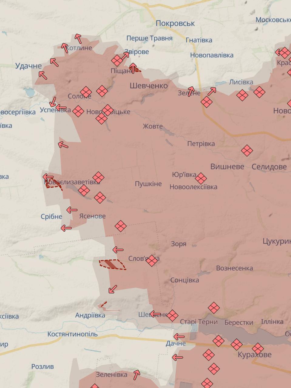 Кроме того, россияне продвинулись на нескольких участках от Покровска до Курахово.