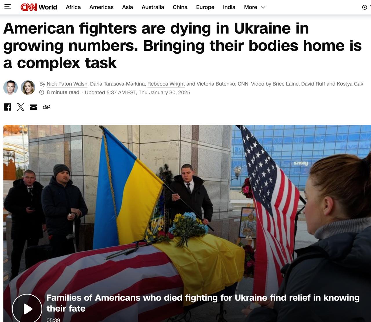 За последние полгода резко возросло количество погибших американцев на войне в Украине. Об этом говорится в расследовании CNN.