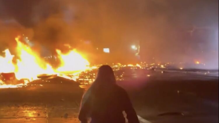 При крушении борт врезался в жилые дома, которые загорелись. Обломки самолета разбросаны по всей округе.