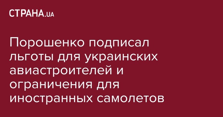 Президент Петр Порошенко подписал закон, ограничивающий ввоз иностранных самолетов в Украину. Документ направлен на поддержку самолетостроительной отрасли. Об этом сообщает пресс-служба президента.