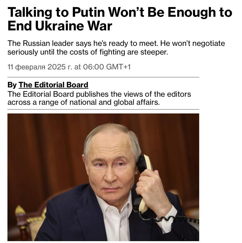 По мнению редакции Bloomberg, Кремль "не будет вести серьезные переговоры, пока цена войны не станет для него выше".