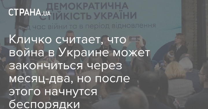 Кличко считает, что война в Украине может закончиться через месяц-два, но после этого начнутся беспорядки