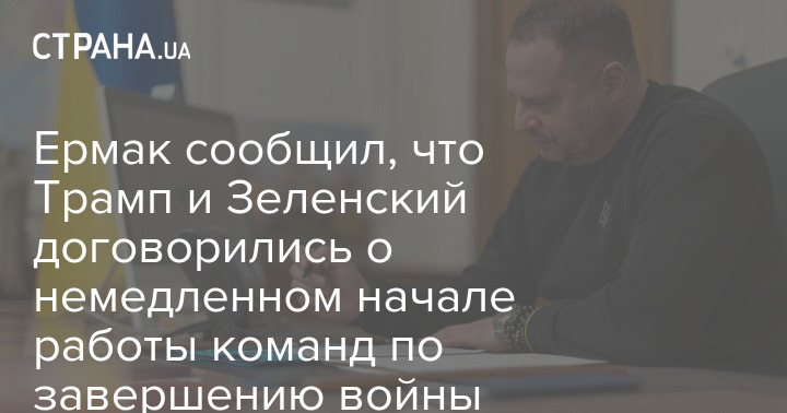 Ермак сообщил, что Трамп и Зеленский договорились о немедленном начале работы команд по завершению войны