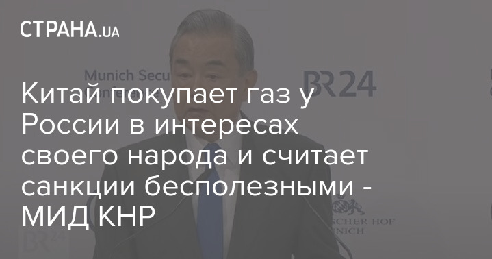 Он добавил, что с помощью российского газа КНР удовлетворяет потребности своего народа. По словам главы китайского МИД, у Пекина своя позиция, которая заключается в том, что страна выступает за решение разногласий политическим путем, так как санкции не могут полностью решить проблему.