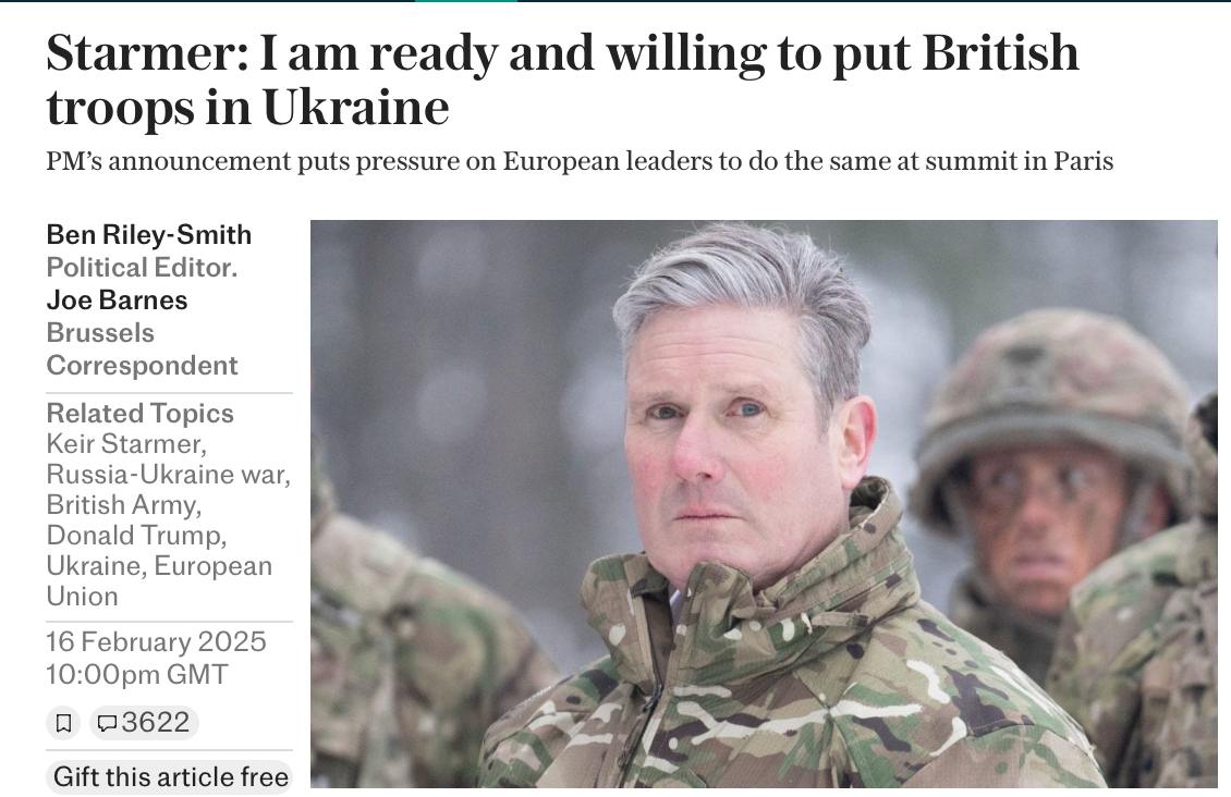 Накануне вечером премьер-министр Великобритании Кир Стармер объявил, что готов направить британские войска в Украину.