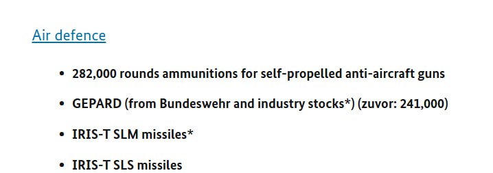 Заявлено, что в пакет войдут боеприпасы и ракеты разных типов, одна гаубица Zuzana 2, БПЛА, два танка для разминирования и стрелковое оружие.