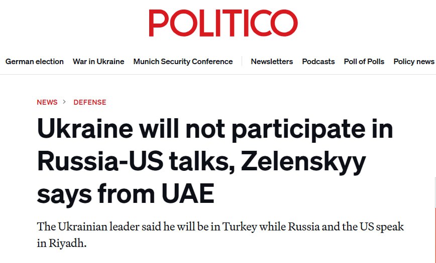 Президент Владимир Зеленский заявил, что Украина не будет участвовать в завтрашних переговорах США и РФ в Саудовской Аравии, "даже если меня попросят".