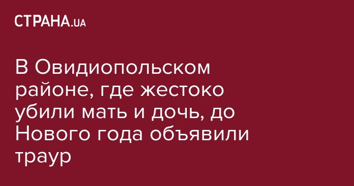 В районном центре Овидиополь Одесской области в связи с убийством женщины и малолетнего ребенка объявлен двухдневный траур.