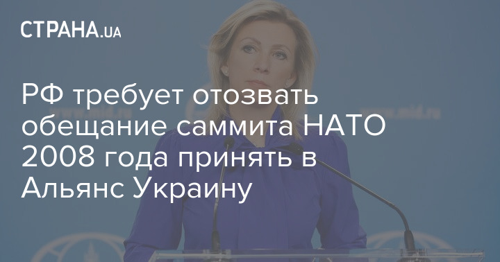 "Членство Украины в НАТО для нас неприемлемо. При этом отказа принимать Киев в НАТО сейчас недостаточно, Альянс должен дезавуировать свои бухарестские обещания 2008 года, в соответствии с которыми Украине гарантировалось вступление в Североатлантический блок в будущем", - сказала Захарова.