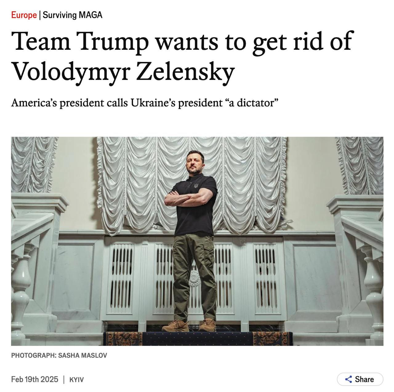 "Многие украинцы также разочарованы своим лидером. Внутренние опросы, проведенные по заказу The Economist, показывают, что, хотя Зеленский остается самым популярным политиком в стране, он проиграл бы будущие выборы с результатом 30% против 65% в пользу Валерия Залужного, бывшего главнокомандующего ВСУ, который пока не идет в политику. В январе публичный опрос показал, что доверие к Зеленскому упало до 52% — минимального уровня с начала войны (по сравнению с 90% в 2022 году), хотя и гораздо выше 4%, о которых заявил Трамп 18 февраля", - пишет издание.