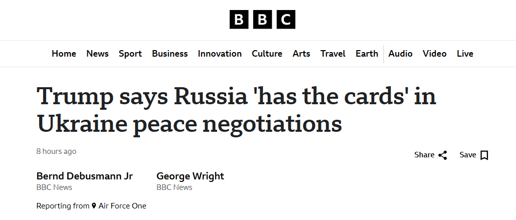 Президент США Дональд Трамп заявил, что у России есть "козыри" в переговорах. По его словам, РФ имеет преимущество из-за того, что она "захватила много территории".