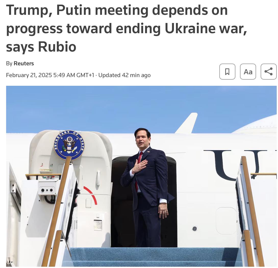 Встреча между президентом США Дональдом Трампом и Владимиром Путиным "во многом будет зависеть от того, удастся ли нам добиться прогресса в прекращении войны в Украине".