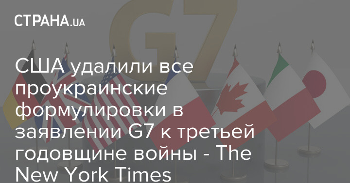 В заявлении стран G7 ("Большой семерки") к третьей годовщине войны США удалили все формулировки, которые можно было бы интерпретировать как проукраинские, чтобы не сорвать мирные переговоры.