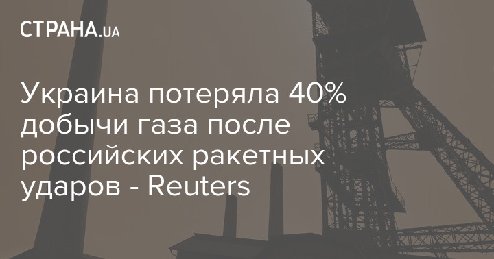 Украина потеряла 40% добычи газа после российских ракетных ударов. Об этом сообщает Reuters со ссылкой на источники.