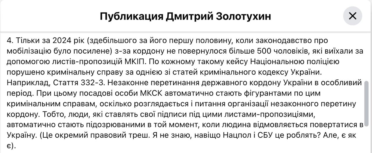"Из-за пробелов в национальном законодательстве возникли многочисленные случаи, когда лица, получившие разрешение Государственной пограничной службы для временного выезда за границу по письму содействия от Минкульта, не вернулись в Украину в установленные сроки", - говорится в сообщении.