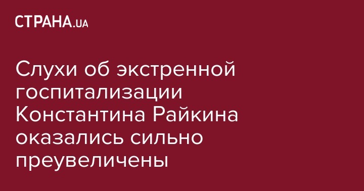 Ранее СМИ сообщили, что Константин Райкин экстренно госпитализирован в институт Склифосовского - актера отвезли в карете "скорой помощи" в научно-исследовательский институт Склифосовского. Причины госпитализации не назывались.