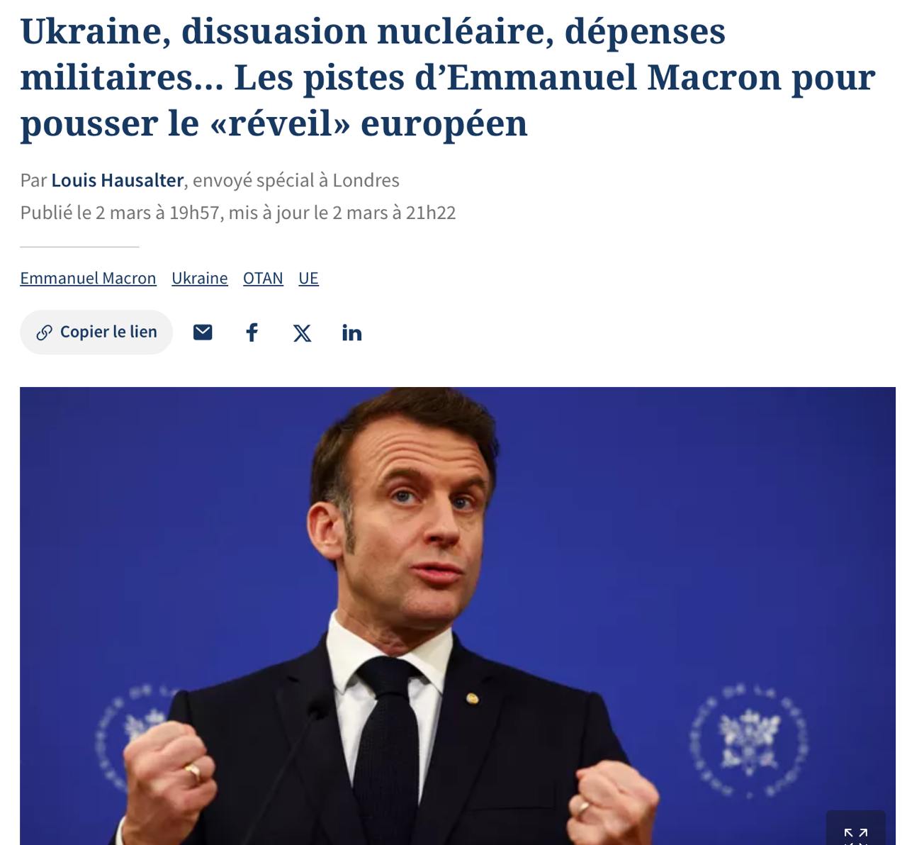 Также Макрон выражает уверенность в возможности "деэскалации" между Трампом и Зеленским. Он уже говорил с американским президентом в пятницу и субботу: "В ближайшие дни нам должно удасться вновь наладить диалог".