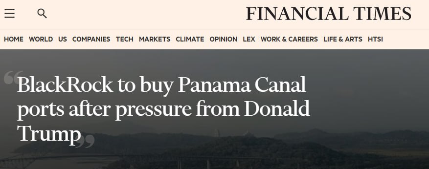 Издание пишет, что американская инвестиционная компания BlackRock договорилась о приобретении двух крупных портов Панамского канала у их нынешнего владельца из Гонконга. Сделка была заключена после того, как президент США Дональд Трамп неоднократно выражал обеспокоенность предполагаемым китайским влиянием на канал и даже обещал отобрать его силой.