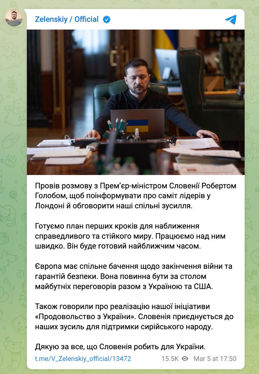 "Готовим план первых шагов по приближению справедливого и устойчивого мира. Работаем над ним быстро. Он будет готов в ближайшее время", - написал президент.