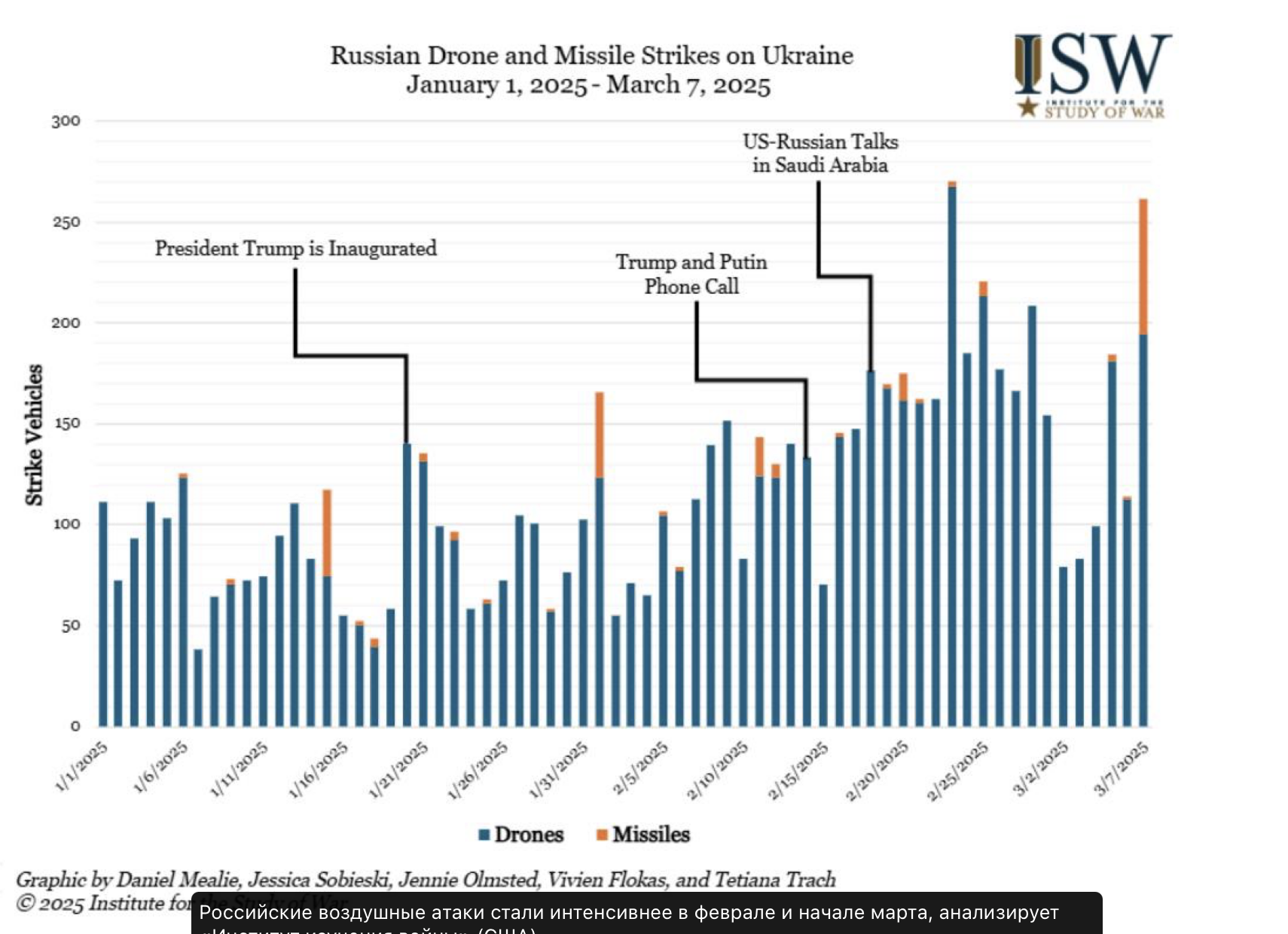 12:40 Российские воздушные атаки стали интенсивнее в феврале и начале марта, анализирует "Институт изучения войны" (США).