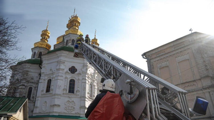 В Киево-Печерской лавре с купола одного из храмов обрушился крест. Фото