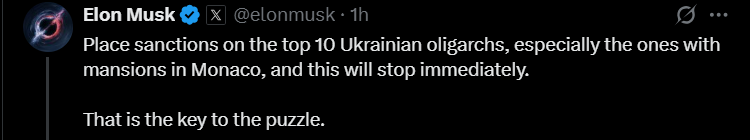 "Введите санкции против 10 крупнейших украинских олигархов, особенно тех, у кого есть особняки в Монако, и это немедленно прекратится. Это ключ к разгадке", - написал соратник Трампа.